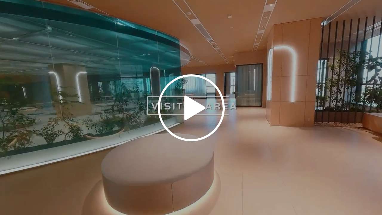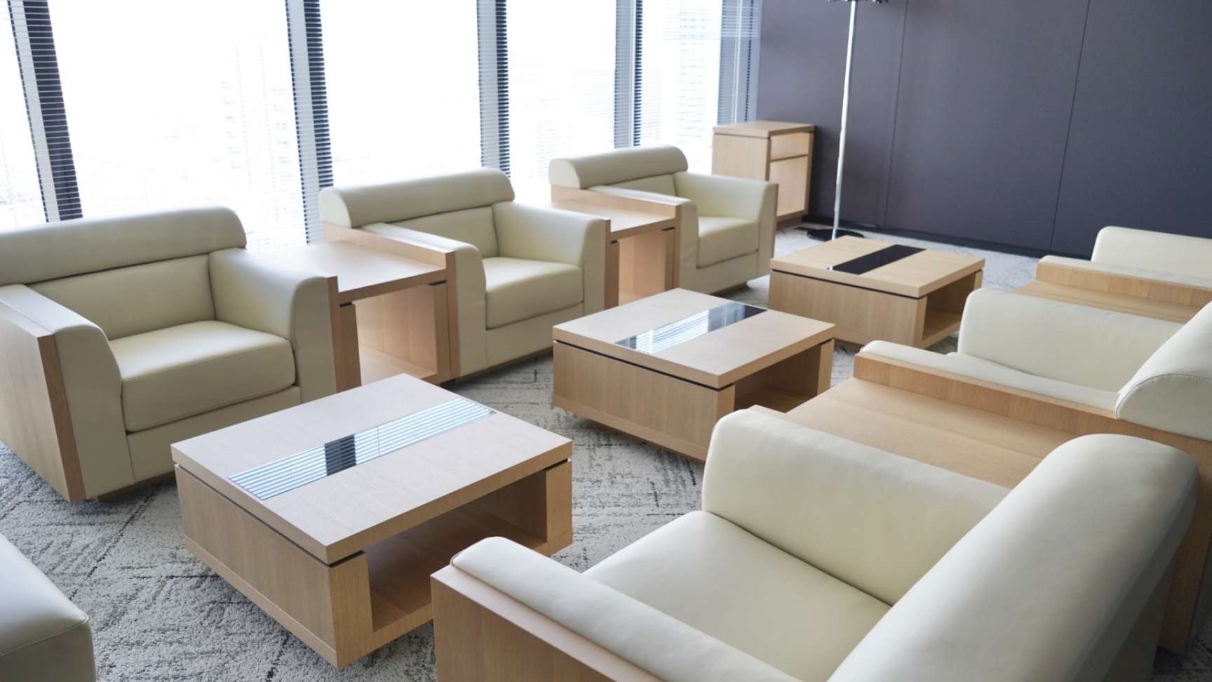 来客フロア 「最も信頼されるパートナーとして世界の顧客を迎える場」をコンセプトに空間全体をアースカラーでまとめています。