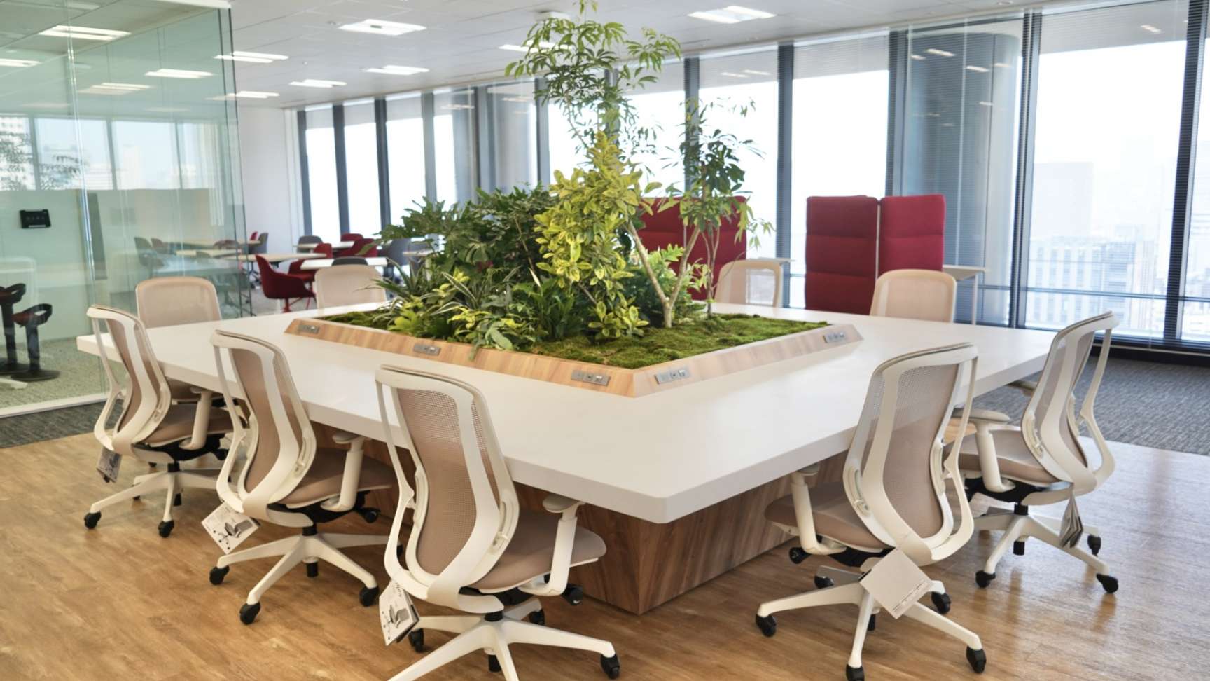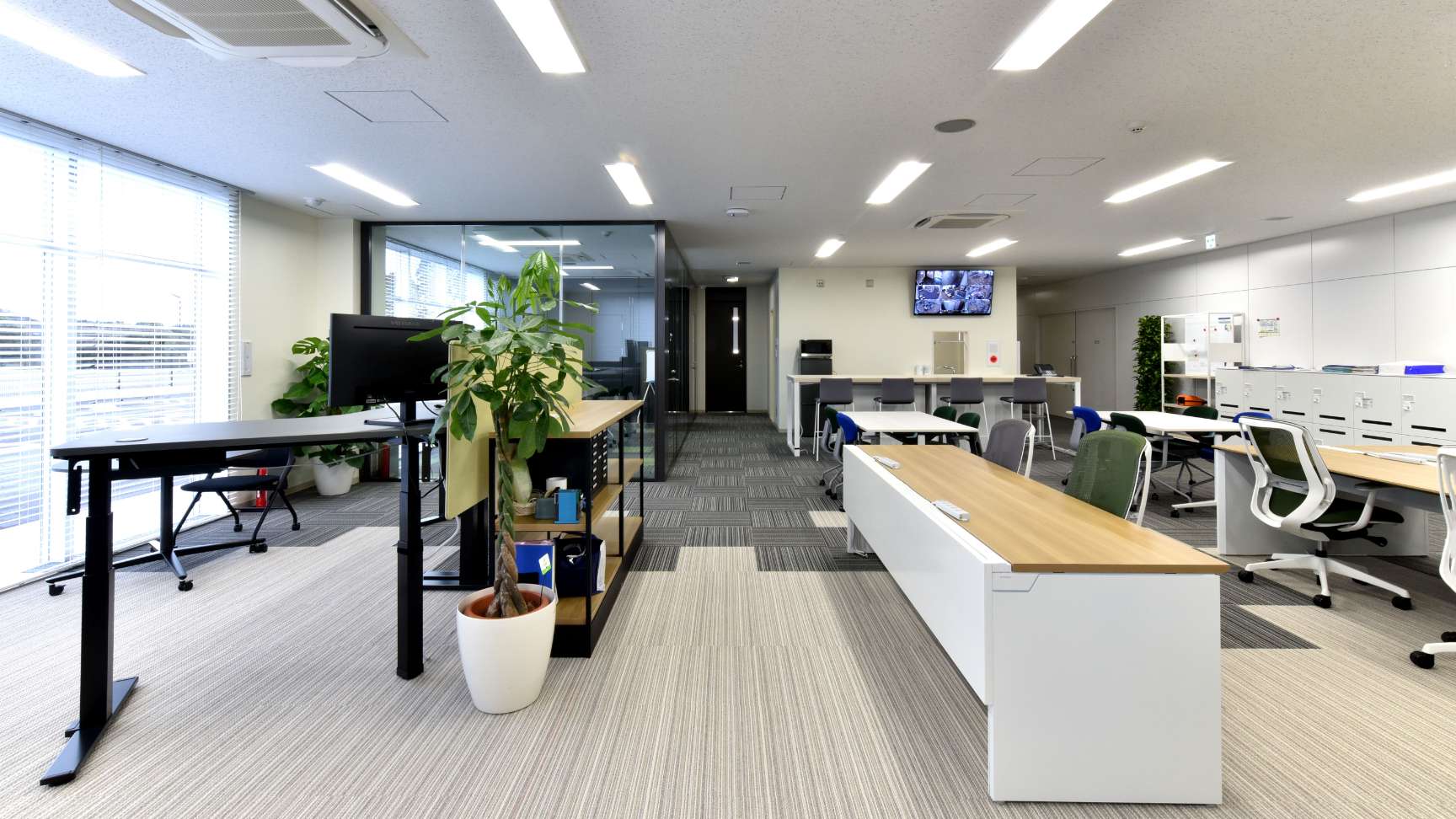 オフィスは「PLANT」と「EARTH」をキーワードにしてデザインされ、ブルーとグリーンが調和したカラーやプラント配管をモチーフとした装飾を使用しています。また、デザイン性だけではなく機能性にも優れており、フリーアドレスが導入されているため、その日の業務内容に応じて最適な執務場所を選択できます。社員の意見を取り入れた働きやすいオフィスを実現させています。