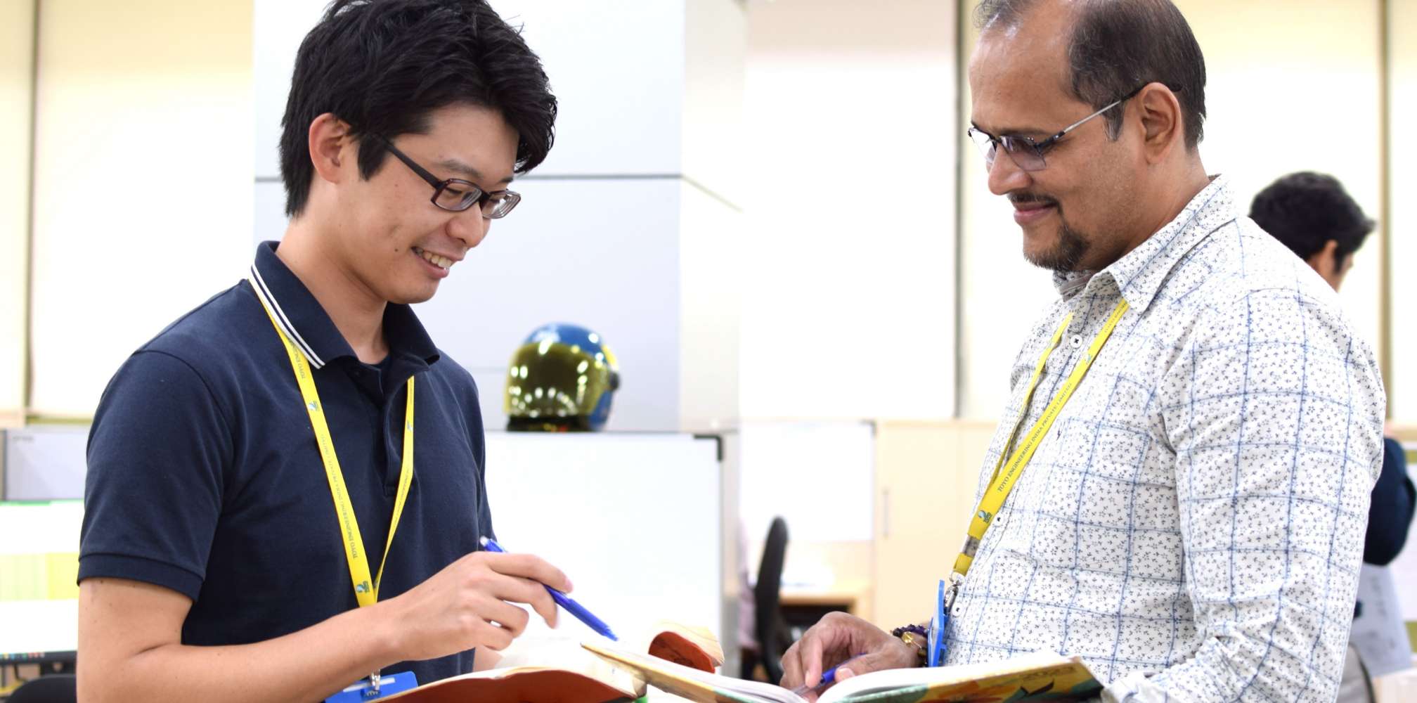 Toyo-Indiaのオフィス全体では約2000人もの従業員がいます。そのうち60人が私と同じ案件で設計を行っていて、そのメンバーを管理するのも私の仕事です。インドのオフィス環境は日本とは大きく異なります。使用言語は英語のみで、大空間に多くのスタッフが集まって働くスタイルを取っています。また、インド人のスタッフは非常に積極的で、活発なディスカッションが日常的に行われています。